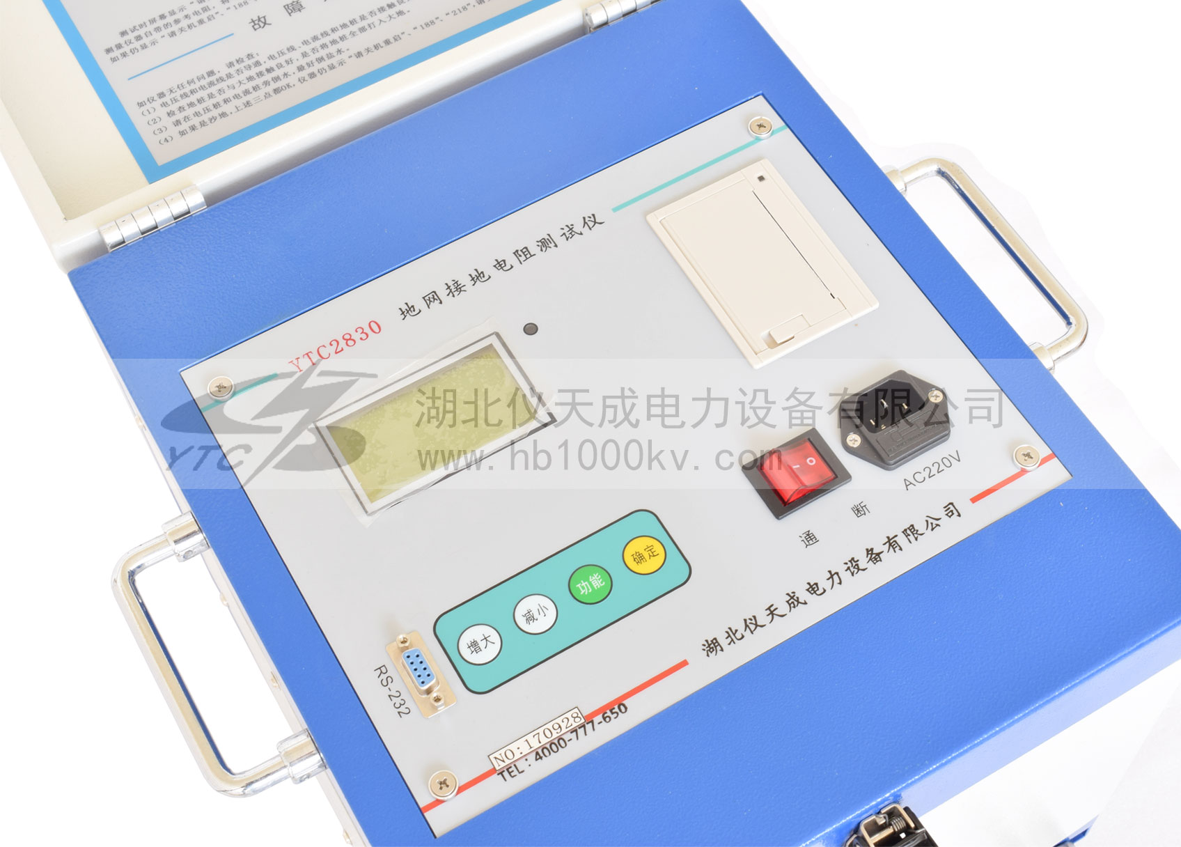 YTC2830大地網接地電阻測試儀,可測變電站地網(4Ω)、水火電廠、微波站(10Ω)、避雷針(10Ω)多用機型。